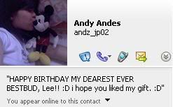 Aww.. Kyot right. Haha! I really treasure my Bestbud, don't I? I can't afford to lose someone like Lee. I can't see any other guy crazier and meaner than him. :)) JK Lee. :p